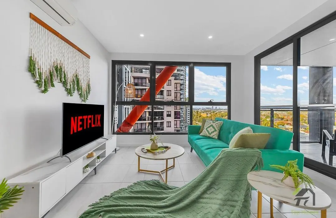 El apartamento Parramatta 2 Bedroom Elegant Home ofrece a sus huéspedes un cuarto de estar, un balcón y una cocina, así como comodidades tan modernas como climatizador.